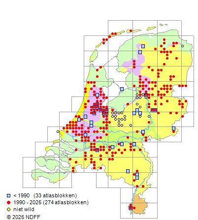Bron: FLORON - Gemodelleerd op basis van waarnemingen uit de NDFF voor de periode 2000-2021.