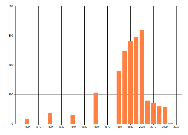 Het aantal atlasblokken (5x5 km) waarin de soort is gemeld binnen een periode van vijf jaar (vanaf 1980) of twintig jaar. Niet gecorrigeerd voor waarnemersinspanning en het aantal doorgegeven waarnemingen kan sterk variëren per periode, dus een trend in verspreiding kan hier niet direct uit worden afgelezen. Het opgegeven jaartal is het eerste jaar van de periode. Bron: gevalideerde waarnemingen uit de NDFF.
