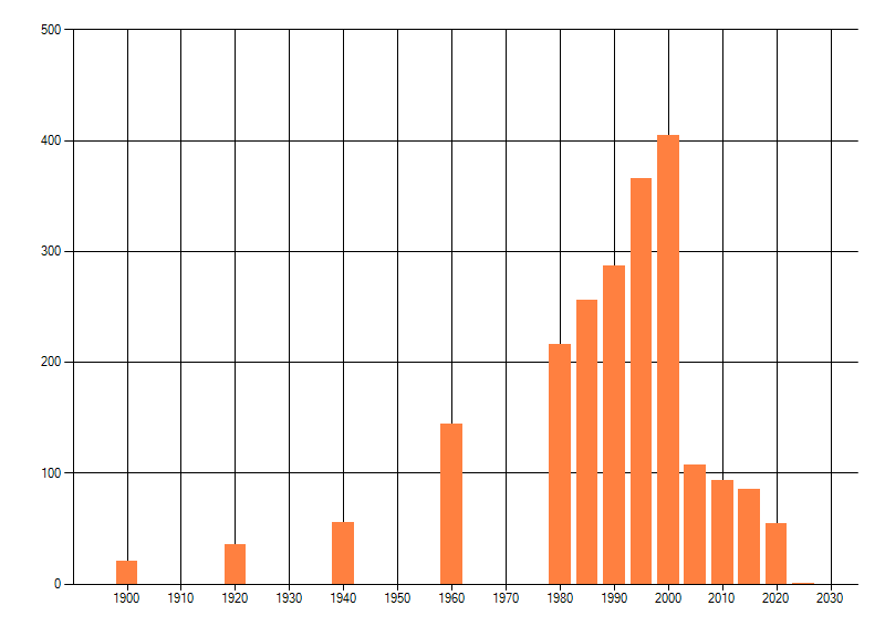 Het aantal atlasblokken (5x5 km) waarin de soort is gemeld binnen een periode van vijf jaar (vanaf 1980) of twintig jaar. Niet gecorrigeerd voor waarnemersinspanning en het aantal doorgegeven waarnemingen kan sterk variëren per periode, dus een trend in verspreiding kan hier niet direct uit worden afgelezen. Het opgegeven jaartal is het eerste jaar van de periode. Bron: gevalideerde waarnemingen uit de NDFF.