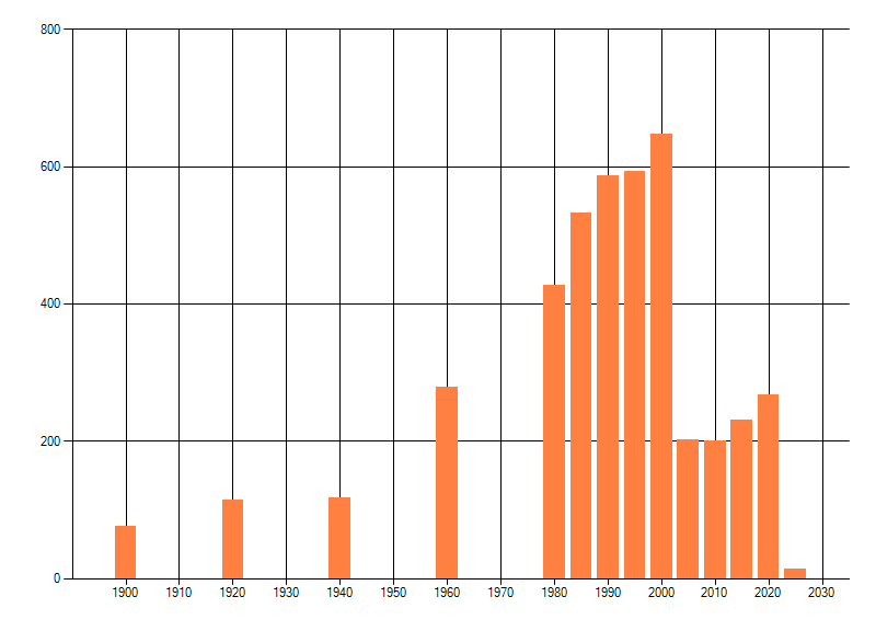 Het aantal atlasblokken (5x5 km) waarin de soort is gemeld binnen een periode van vijf jaar (vanaf 1980) of twintig jaar. Niet gecorrigeerd voor waarnemersinspanning en het aantal doorgegeven waarnemingen kan sterk variëren per periode, dus een trend in verspreiding kan hier niet direct uit worden afgelezen. Het opgegeven jaartal is het eerste jaar van de periode. Bron: gevalideerde waarnemingen uit de NDFF.