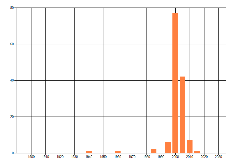 Het aantal atlasblokken (5x5 km) waarin de soort is gemeld binnen een periode van vijf jaar (vanaf 1980) of twintig jaar. Niet gecorrigeerd voor waarnemersinspanning en het aantal doorgegeven waarnemingen kan sterk variëren per periode, dus een trend in verspreiding kan hier niet direct uit worden afgelezen. Het opgegeven jaartal is het eerste jaar van de periode. Bron: gevalideerde waarnemingen uit de NDFF.