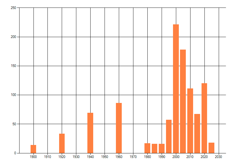 Het aantal atlasblokken (5x5 km) waarin de soort is gemeld binnen een periode van vijf jaar (vanaf 1980) of twintig jaar. Niet gecorrigeerd voor waarnemersinspanning en het aantal doorgegeven waarnemingen kan sterk variëren per periode, dus een trend in verspreiding kan hier niet direct uit worden afgelezen. Het opgegeven jaartal is het eerste jaar van de periode. Bron: gevalideerde waarnemingen uit de NDFF.
