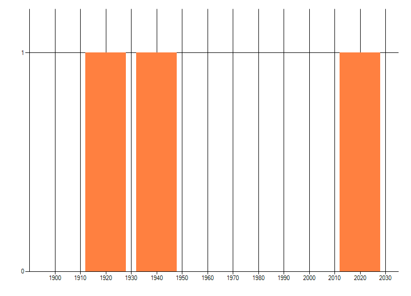 Het aantal atlasblokken (5x5 km) waarin de soort is gemeld binnen een periode van vijf jaar (vanaf 1980) of twintig jaar. Niet gecorrigeerd voor waarnemersinspanning en het aantal doorgegeven waarnemingen kan sterk variëren per periode, dus een trend in verspreiding kan hier niet direct uit worden afgelezen. Het opgegeven jaartal is het eerste jaar van de periode. Bron: gevalideerde waarnemingen uit de NDFF.