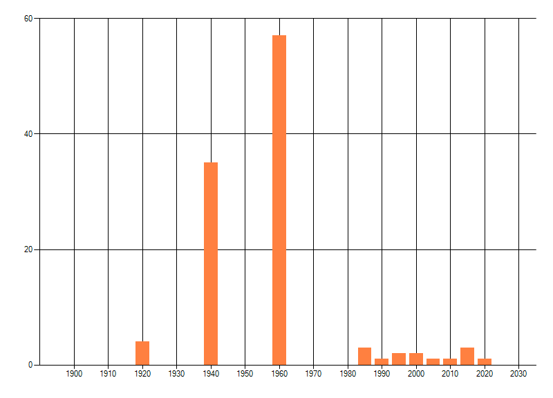 Het aantal atlasblokken (5x5 km) waarin de soort is gemeld binnen een periode van vijf jaar (vanaf 1980) of twintig jaar. Niet gecorrigeerd voor waarnemersinspanning en het aantal doorgegeven waarnemingen kan sterk variëren per periode, dus een trend in verspreiding kan hier niet direct uit worden afgelezen. Het opgegeven jaartal is het eerste jaar van de periode. Bron: gevalideerde waarnemingen uit de NDFF.