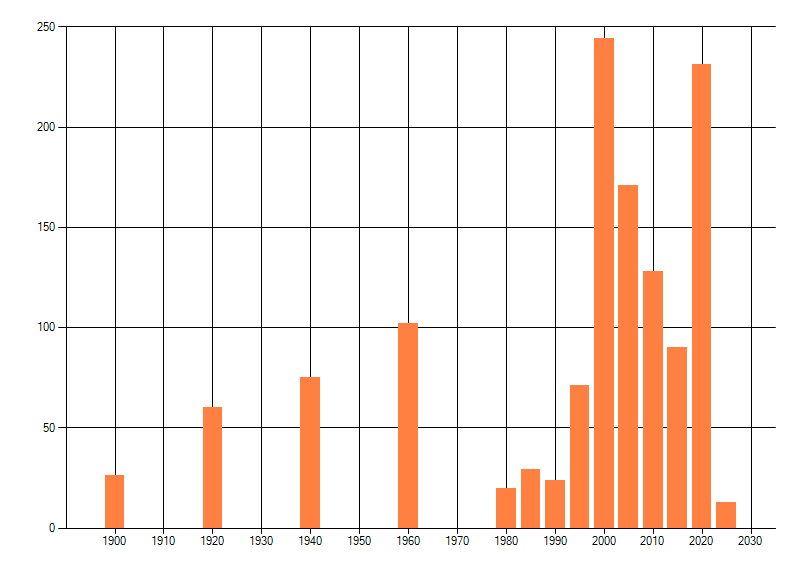 Het aantal atlasblokken (5x5 km) waarin de soort is gemeld binnen een periode van vijf jaar (vanaf 1980) of twintig jaar. Niet gecorrigeerd voor waarnemersinspanning en het aantal doorgegeven waarnemingen kan sterk variëren per periode, dus een trend in verspreiding kan hier niet direct uit worden afgelezen. Het opgegeven jaartal is het eerste jaar van de periode. Bron: gevalideerde waarnemingen uit de NDFF.