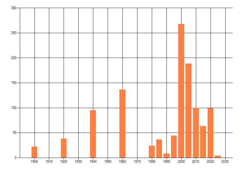 Het aantal atlasblokken (5x5 km) waarin de soort is gemeld binnen een periode van vijf jaar (vanaf 1980) of twintig jaar. Niet gecorrigeerd voor waarnemersinspanning en het aantal doorgegeven waarnemingen kan sterk variëren per periode, dus een trend in verspreiding kan hier niet direct uit worden afgelezen. Het opgegeven jaartal is het eerste jaar van de periode. Bron: gevalideerde waarnemingen uit de NDFF.