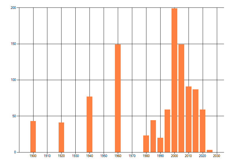 Het aantal atlasblokken (5x5 km) waarin de soort is gemeld binnen een periode van vijf jaar (vanaf 1980) of twintig jaar. Niet gecorrigeerd voor waarnemersinspanning en het aantal doorgegeven waarnemingen kan sterk variëren per periode, dus een trend in verspreiding kan hier niet direct uit worden afgelezen. Het opgegeven jaartal is het eerste jaar van de periode. Bron: gevalideerde waarnemingen uit de NDFF.