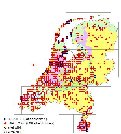Bron: FLORON - Gemodelleerd op basis van waarnemingen uit de NDFF voor de periode 2000-2021.