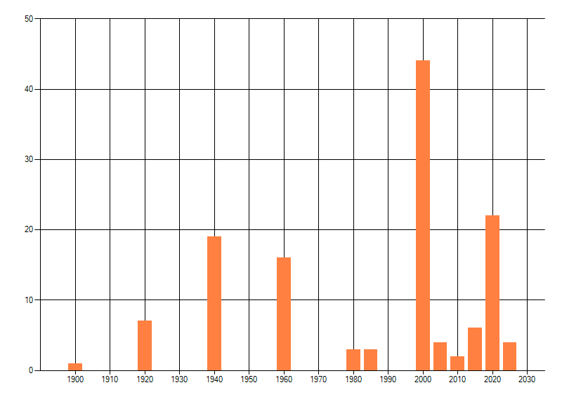 Het aantal atlasblokken (5x5 km) waarin de soort is gemeld binnen een periode van vijf jaar (vanaf 1980) of twintig jaar. Niet gecorrigeerd voor waarnemersinspanning en het aantal doorgegeven waarnemingen kan sterk variëren per periode, dus een trend in verspreiding kan hier niet direct uit worden afgelezen. Het opgegeven jaartal is het eerste jaar van de periode. Bron: gevalideerde waarnemingen uit de NDFF.