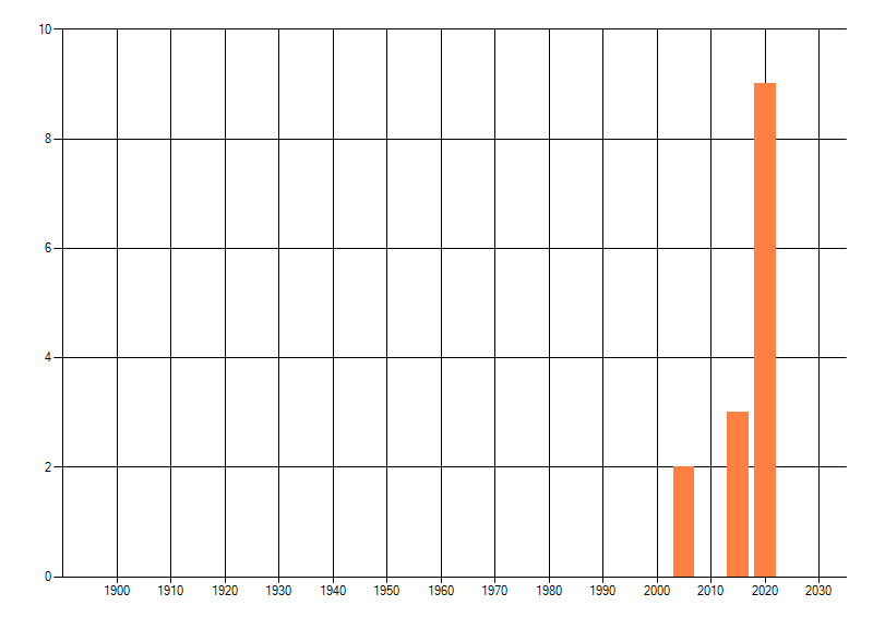 Het aantal atlasblokken (5x5 km) waarin de soort is gemeld binnen een periode van vijf jaar (vanaf 1980) of twintig jaar. Niet gecorrigeerd voor waarnemersinspanning en het aantal doorgegeven waarnemingen kan sterk variëren per periode, dus een trend in verspreiding kan hier niet direct uit worden afgelezen. Het opgegeven jaartal is het eerste jaar van de periode. Bron: gevalideerde waarnemingen uit de NDFF.