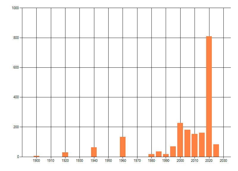 Het aantal atlasblokken (5x5 km) waarin de soort is gemeld binnen een periode van vijf jaar (vanaf 1980) of twintig jaar. Niet gecorrigeerd voor waarnemersinspanning en het aantal doorgegeven waarnemingen kan sterk variëren per periode, dus een trend in verspreiding kan hier niet direct uit worden afgelezen. Het opgegeven jaartal is het eerste jaar van de periode. Bron: gevalideerde waarnemingen uit de NDFF.