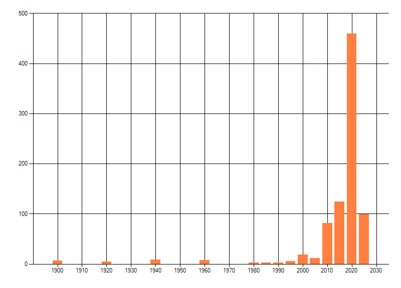 Het aantal atlasblokken (5x5 km) waarin de soort is gemeld binnen een periode van vijf jaar (vanaf 1980) of twintig jaar. Niet gecorrigeerd voor waarnemersinspanning en het aantal doorgegeven waarnemingen kan sterk variëren per periode, dus een trend in verspreiding kan hier niet direct uit worden afgelezen. Het opgegeven jaartal is het eerste jaar van de periode. Bron: gevalideerde waarnemingen uit de NDFF.