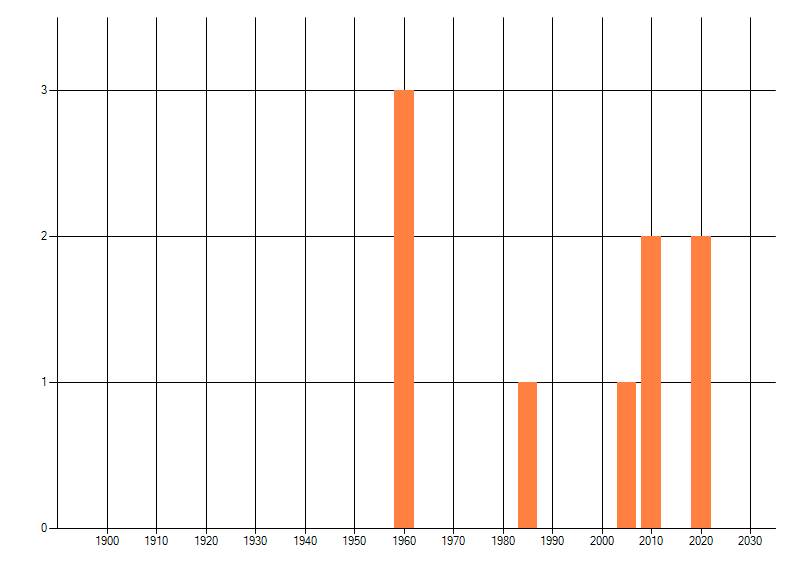Het aantal atlasblokken (5x5 km) waarin de soort is gemeld binnen een periode van vijf jaar (vanaf 1980) of twintig jaar. Niet gecorrigeerd voor waarnemersinspanning en het aantal doorgegeven waarnemingen kan sterk variëren per periode, dus een trend in verspreiding kan hier niet direct uit worden afgelezen. Het opgegeven jaartal is het eerste jaar van de periode. Bron: gevalideerde waarnemingen uit de NDFF.