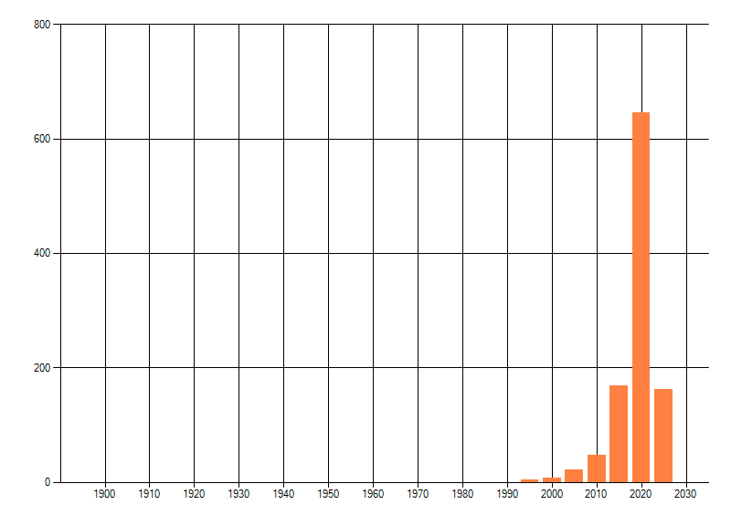 Het aantal atlasblokken (5x5 km) waarin de soort is gemeld binnen een periode van vijf jaar (vanaf 1980) of twintig jaar. Niet gecorrigeerd voor waarnemersinspanning en het aantal doorgegeven waarnemingen kan sterk variëren per periode, dus een trend in verspreiding kan hier niet direct uit worden afgelezen. Het opgegeven jaartal is het eerste jaar van de periode. Bron: gevalideerde waarnemingen uit de NDFF.
