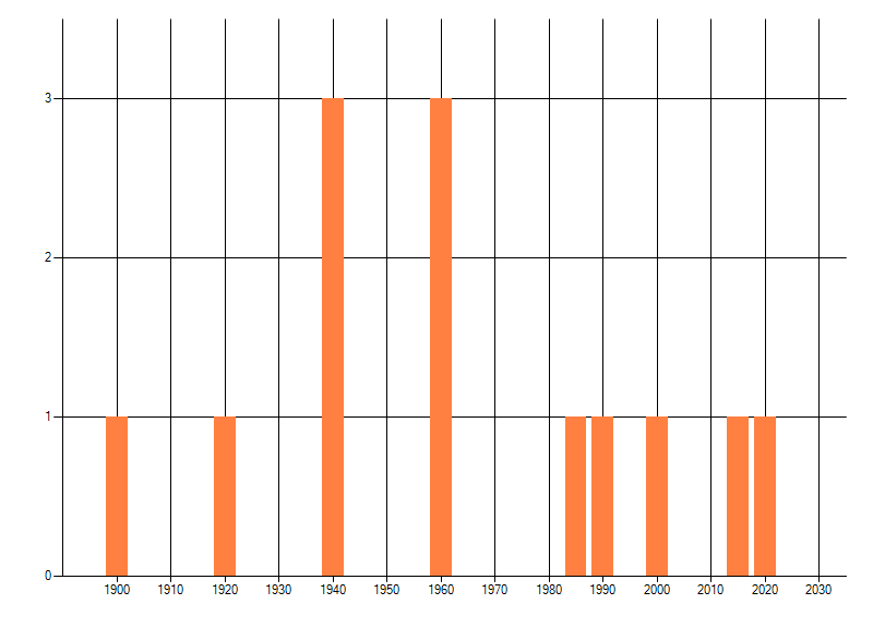Het aantal atlasblokken (5x5 km) waarin de soort is gemeld binnen een periode van vijf jaar (vanaf 1980) of twintig jaar. Niet gecorrigeerd voor waarnemersinspanning en het aantal doorgegeven waarnemingen kan sterk variëren per periode, dus een trend in verspreiding kan hier niet direct uit worden afgelezen. Het opgegeven jaartal is het eerste jaar van de periode. Bron: gevalideerde waarnemingen uit de NDFF.