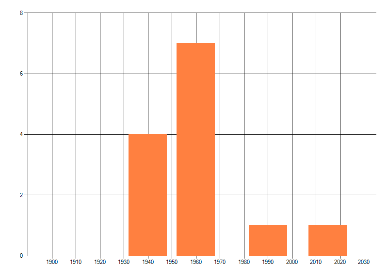 Het aantal atlasblokken (5x5 km) waarin de soort is gemeld binnen een periode van vijf jaar (vanaf 1980) of twintig jaar. Niet gecorrigeerd voor waarnemersinspanning en het aantal doorgegeven waarnemingen kan sterk variëren per periode, dus een trend in verspreiding kan hier niet direct uit worden afgelezen. Het opgegeven jaartal is het eerste jaar van de periode. Bron: gevalideerde waarnemingen uit de NDFF.