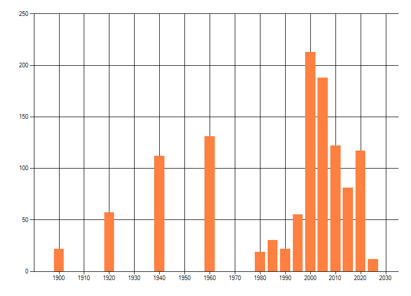 Het aantal atlasblokken (5x5 km) waarin de soort is gemeld binnen een periode van vijf jaar (vanaf 1980) of twintig jaar. Niet gecorrigeerd voor waarnemersinspanning en het aantal doorgegeven waarnemingen kan sterk variëren per periode, dus een trend in verspreiding kan hier niet direct uit worden afgelezen. Het opgegeven jaartal is het eerste jaar van de periode. Bron: gevalideerde waarnemingen uit de NDFF.