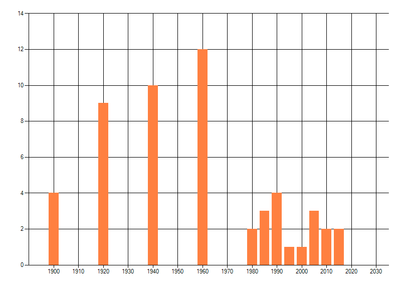 Het aantal atlasblokken (5x5 km) waarin de soort is gemeld binnen een periode van vijf jaar (vanaf 1980) of twintig jaar. Niet gecorrigeerd voor waarnemersinspanning en het aantal doorgegeven waarnemingen kan sterk variëren per periode, dus een trend in verspreiding kan hier niet direct uit worden afgelezen. Het opgegeven jaartal is het eerste jaar van de periode. Bron: gevalideerde waarnemingen uit de NDFF.