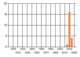Het aantal atlasblokken (5x5 km) waarin de soort is gemeld binnen een periode van vijf jaar (vanaf 1980) of twintig jaar. Niet gecorrigeerd voor waarnemersinspanning en het aantal doorgegeven waarnemingen kan sterk variëren per periode, dus een trend in verspreiding kan hier niet direct uit worden afgelezen. Het opgegeven jaartal is het eerste jaar van de periode. Bron: gevalideerde waarnemingen uit de NDFF.