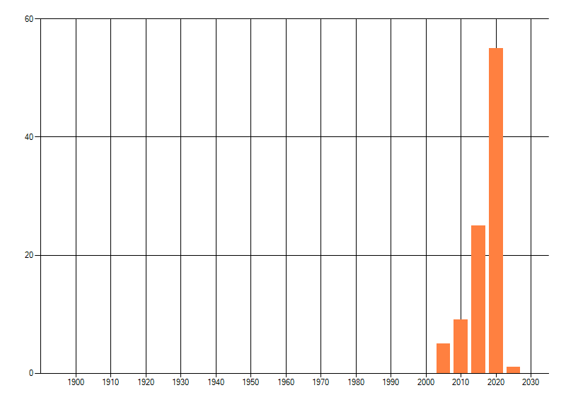 Het aantal atlasblokken (5x5 km) waarin de soort is gemeld binnen een periode van vijf jaar (vanaf 1980) of twintig jaar. Niet gecorrigeerd voor waarnemersinspanning en het aantal doorgegeven waarnemingen kan sterk variëren per periode, dus een trend in verspreiding kan hier niet direct uit worden afgelezen. Het opgegeven jaartal is het eerste jaar van de periode. Bron: gevalideerde waarnemingen uit de NDFF.