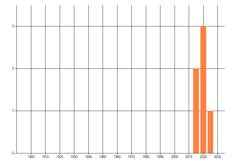Het aantal atlasblokken (5x5 km) waarin de soort is gemeld binnen een periode van vijf jaar (vanaf 1980) of twintig jaar. Niet gecorrigeerd voor waarnemersinspanning en het aantal doorgegeven waarnemingen kan sterk variëren per periode, dus een trend in verspreiding kan hier niet direct uit worden afgelezen. Het opgegeven jaartal is het eerste jaar van de periode. Bron: gevalideerde waarnemingen uit de NDFF.