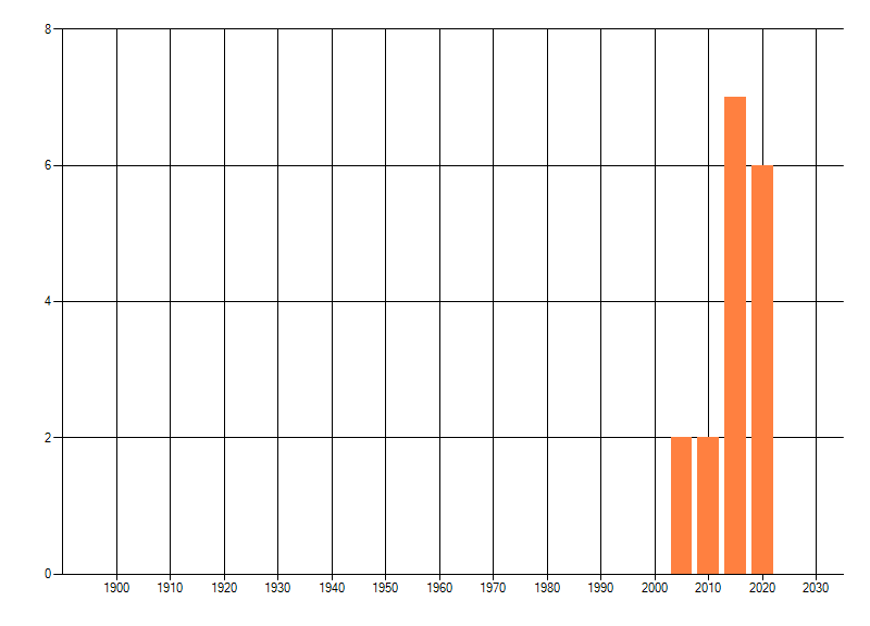 Het aantal atlasblokken (5x5 km) waarin de soort is gemeld binnen een periode van vijf jaar (vanaf 1980) of twintig jaar. Niet gecorrigeerd voor waarnemersinspanning en het aantal doorgegeven waarnemingen kan sterk variëren per periode, dus een trend in verspreiding kan hier niet direct uit worden afgelezen. Het opgegeven jaartal is het eerste jaar van de periode. Bron: gevalideerde waarnemingen uit de NDFF.