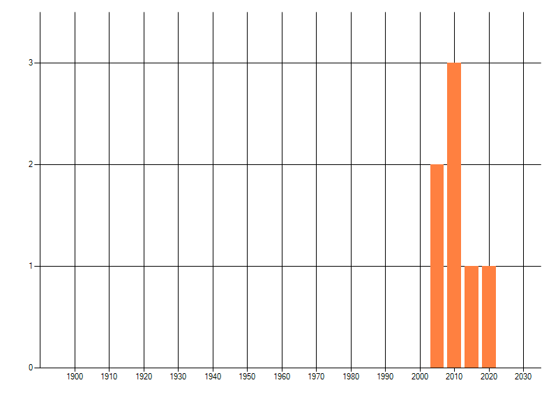 Het aantal atlasblokken (5x5 km) waarin de soort is gemeld binnen een periode van vijf jaar (vanaf 1980) of twintig jaar. Niet gecorrigeerd voor waarnemersinspanning en het aantal doorgegeven waarnemingen kan sterk variëren per periode, dus een trend in verspreiding kan hier niet direct uit worden afgelezen. Het opgegeven jaartal is het eerste jaar van de periode. Bron: gevalideerde waarnemingen uit de NDFF.