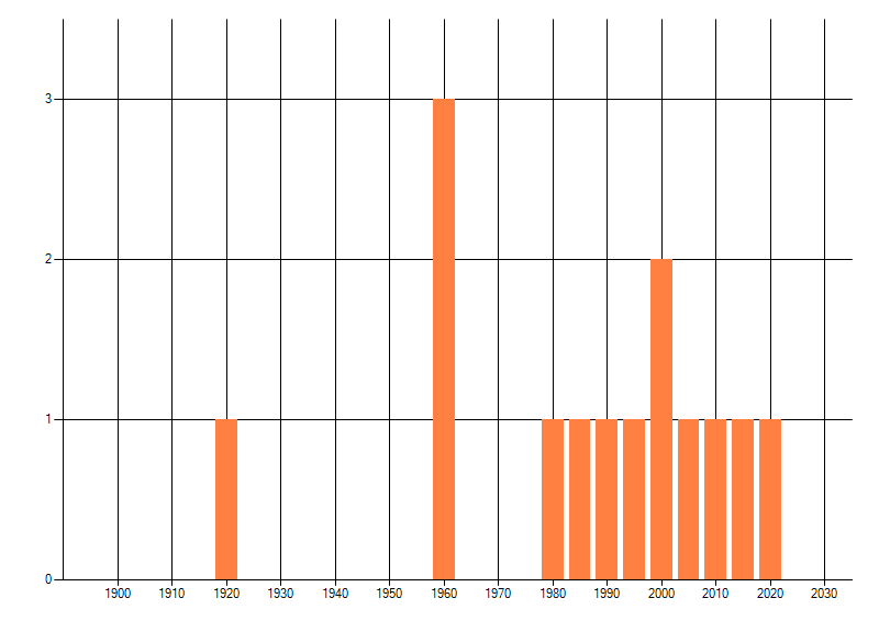 Het aantal atlasblokken (5x5 km) waarin de soort is gemeld binnen een periode van vijf jaar (vanaf 1980) of twintig jaar. Niet gecorrigeerd voor waarnemersinspanning en het aantal doorgegeven waarnemingen kan sterk variëren per periode, dus een trend in verspreiding kan hier niet direct uit worden afgelezen. Het opgegeven jaartal is het eerste jaar van de periode. Bron: gevalideerde waarnemingen uit de NDFF.