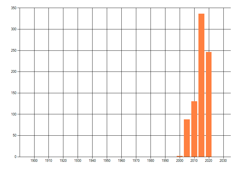 Het aantal atlasblokken (5x5 km) waarin de soort is gemeld binnen een periode van vijf jaar (vanaf 1980) of twintig jaar. Niet gecorrigeerd voor waarnemersinspanning en het aantal doorgegeven waarnemingen kan sterk variëren per periode, dus een trend in verspreiding kan hier niet direct uit worden afgelezen. Het opgegeven jaartal is het eerste jaar van de periode. Bron: gevalideerde waarnemingen uit de NDFF.