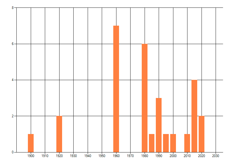 Het aantal atlasblokken (5x5 km) waarin de soort is gemeld binnen een periode van vijf jaar (vanaf 1980) of twintig jaar. Niet gecorrigeerd voor waarnemersinspanning en het aantal doorgegeven waarnemingen kan sterk variëren per periode, dus een trend in verspreiding kan hier niet direct uit worden afgelezen. Het opgegeven jaartal is het eerste jaar van de periode. Bron: gevalideerde waarnemingen uit de NDFF.