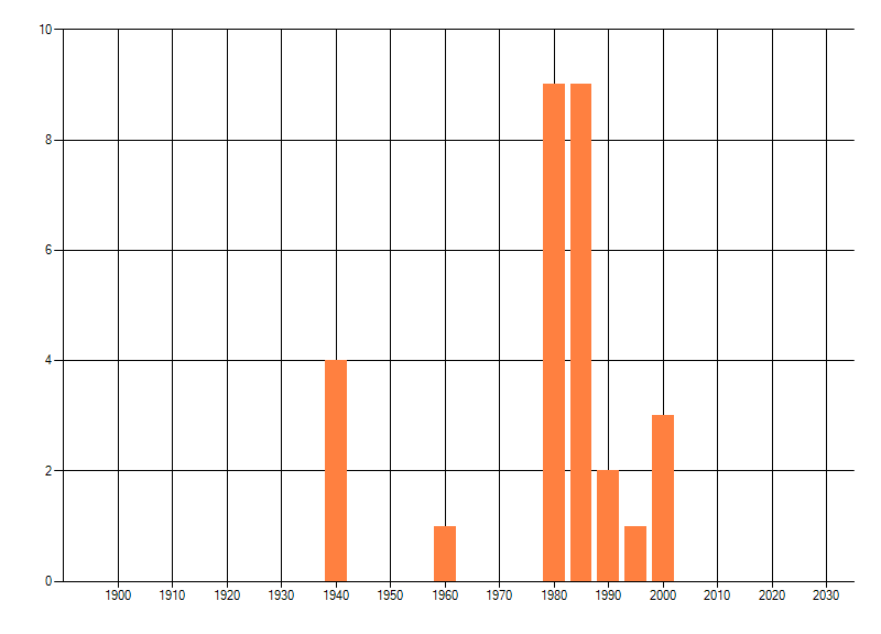 Het aantal atlasblokken (5x5 km) waarin de soort is gemeld binnen een periode van vijf jaar (vanaf 1980) of twintig jaar. Niet gecorrigeerd voor waarnemersinspanning en het aantal doorgegeven waarnemingen kan sterk variëren per periode, dus een trend in verspreiding kan hier niet direct uit worden afgelezen. Het opgegeven jaartal is het eerste jaar van de periode. Bron: gevalideerde waarnemingen uit de NDFF.