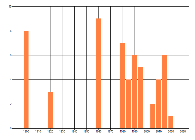 Het aantal atlasblokken (5x5 km) waarin de soort is gemeld binnen een periode van vijf jaar (vanaf 1980) of twintig jaar. Niet gecorrigeerd voor waarnemersinspanning en het aantal doorgegeven waarnemingen kan sterk variëren per periode, dus een trend in verspreiding kan hier niet direct uit worden afgelezen. Het opgegeven jaartal is het eerste jaar van de periode. Bron: gevalideerde waarnemingen uit de NDFF.