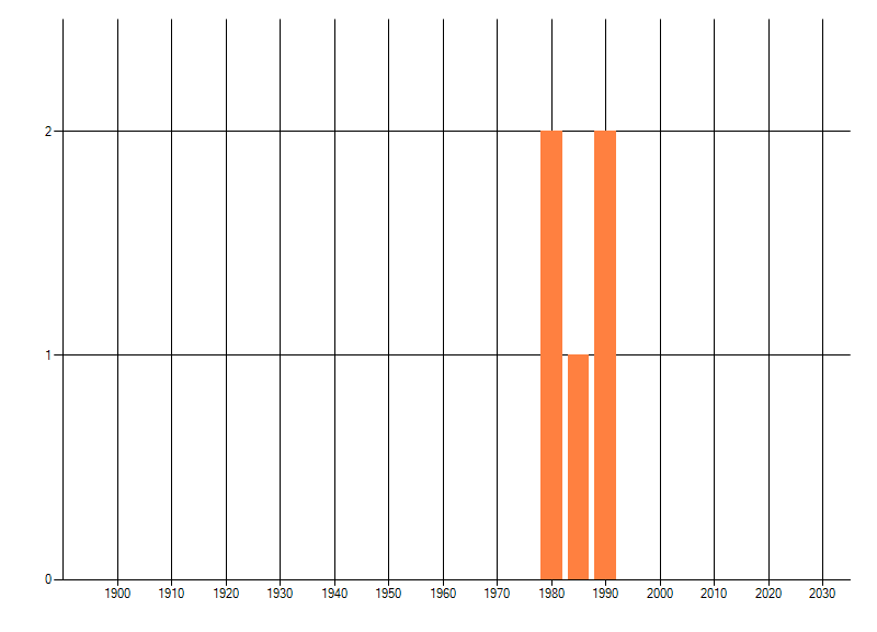Het aantal atlasblokken (5x5 km) waarin de soort is gemeld binnen een periode van vijf jaar (vanaf 1980) of twintig jaar. Niet gecorrigeerd voor waarnemersinspanning en het aantal doorgegeven waarnemingen kan sterk variëren per periode, dus een trend in verspreiding kan hier niet direct uit worden afgelezen. Het opgegeven jaartal is het eerste jaar van de periode. Bron: gevalideerde waarnemingen uit de NDFF.