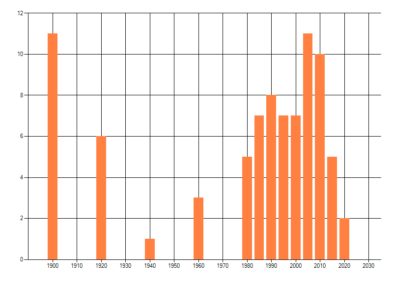 Het aantal atlasblokken (5x5 km) waarin de soort is gemeld binnen een periode van vijf jaar (vanaf 1980) of twintig jaar. Niet gecorrigeerd voor waarnemersinspanning en het aantal doorgegeven waarnemingen kan sterk variëren per periode, dus een trend in verspreiding kan hier niet direct uit worden afgelezen. Het opgegeven jaartal is het eerste jaar van de periode. Bron: gevalideerde waarnemingen uit de NDFF.