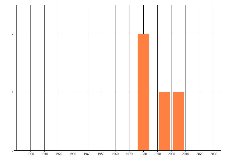 Het aantal atlasblokken (5x5 km) waarin de soort is gemeld binnen een periode van vijf jaar (vanaf 1980) of twintig jaar. Niet gecorrigeerd voor waarnemersinspanning en het aantal doorgegeven waarnemingen kan sterk variëren per periode, dus een trend in verspreiding kan hier niet direct uit worden afgelezen. Het opgegeven jaartal is het eerste jaar van de periode. Bron: gevalideerde waarnemingen uit de NDFF.