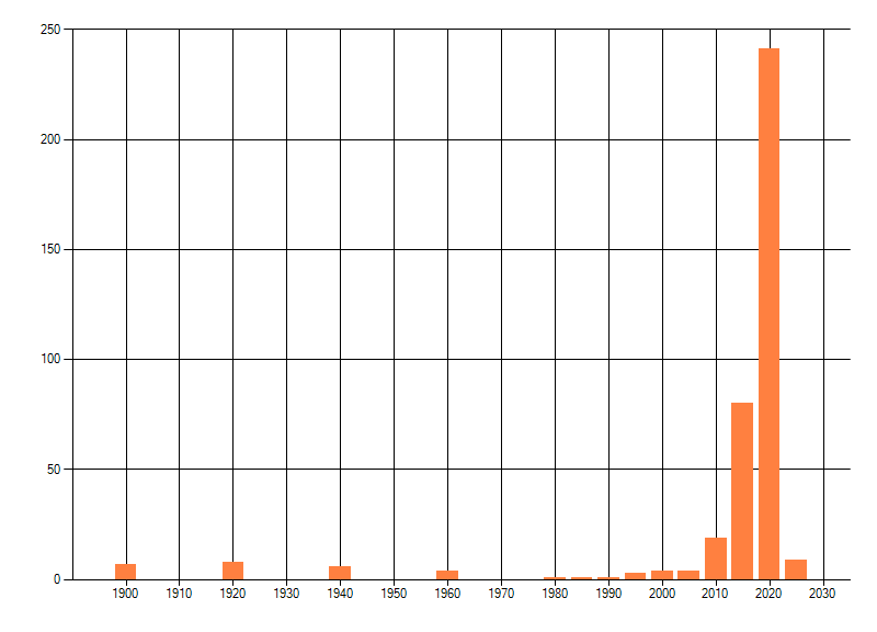 Het aantal atlasblokken (5x5 km) waarin de soort is gemeld binnen een periode van vijf jaar (vanaf 1980) of twintig jaar. Niet gecorrigeerd voor waarnemersinspanning en het aantal doorgegeven waarnemingen kan sterk variëren per periode, dus een trend in verspreiding kan hier niet direct uit worden afgelezen. Het opgegeven jaartal is het eerste jaar van de periode. Bron: gevalideerde waarnemingen uit de NDFF.