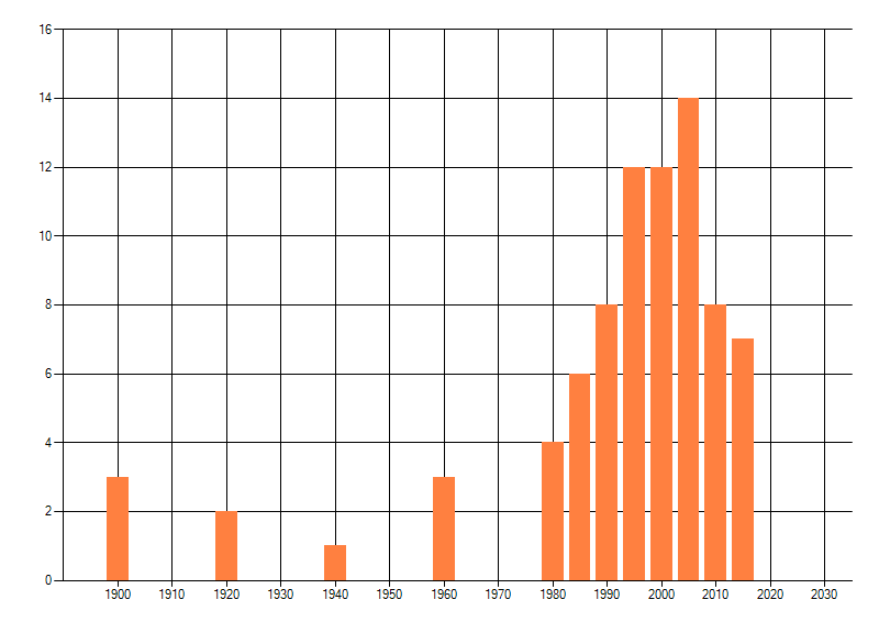 Het aantal atlasblokken (5x5 km) waarin de soort is gemeld binnen een periode van vijf jaar (vanaf 1980) of twintig jaar. Niet gecorrigeerd voor waarnemersinspanning en het aantal doorgegeven waarnemingen kan sterk variëren per periode, dus een trend in verspreiding kan hier niet direct uit worden afgelezen. Het opgegeven jaartal is het eerste jaar van de periode. Bron: gevalideerde waarnemingen uit de NDFF.
