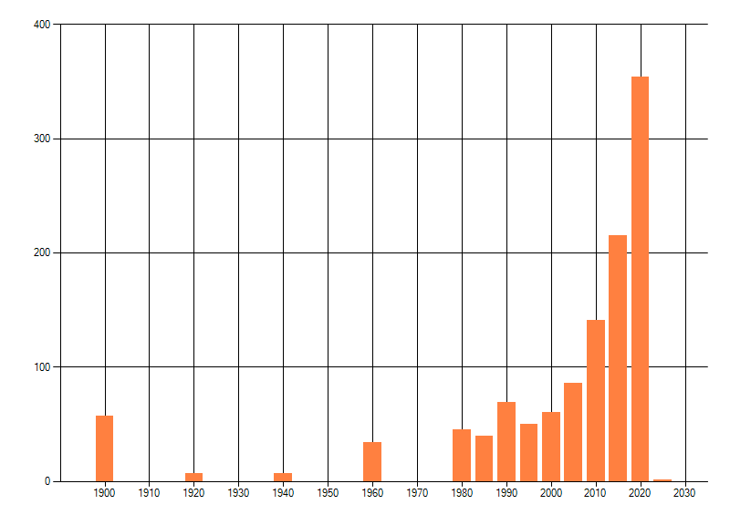 Het aantal atlasblokken (5x5 km) waarin de soort is gemeld binnen een periode van vijf jaar (vanaf 1980) of twintig jaar. Niet gecorrigeerd voor waarnemersinspanning en het aantal doorgegeven waarnemingen kan sterk variëren per periode, dus een trend in verspreiding kan hier niet direct uit worden afgelezen. Het opgegeven jaartal is het eerste jaar van de periode. Bron: gevalideerde waarnemingen uit de NDFF.