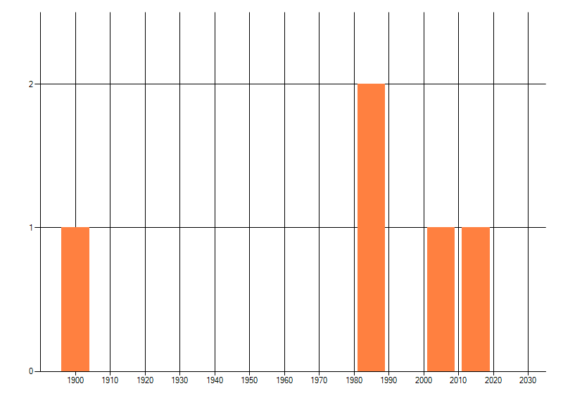 Het aantal atlasblokken (5x5 km) waarin de soort is gemeld binnen een periode van vijf jaar (vanaf 1980) of twintig jaar. Niet gecorrigeerd voor waarnemersinspanning en het aantal doorgegeven waarnemingen kan sterk variëren per periode, dus een trend in verspreiding kan hier niet direct uit worden afgelezen. Het opgegeven jaartal is het eerste jaar van de periode. Bron: gevalideerde waarnemingen uit de NDFF.
