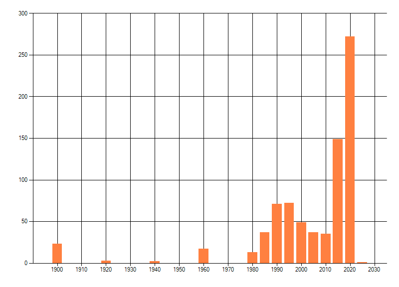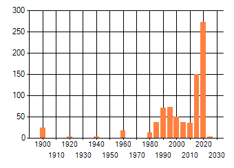 Het aantal atlasblokken (5x5 km) waarin de soort is gemeld binnen een periode van vijf jaar (vanaf 1980) of twintig jaar. Niet gecorrigeerd voor waarnemersinspanning en het aantal doorgegeven waarnemingen kan sterk variëren per periode, dus een trend in verspreiding kan hier niet direct uit worden afgelezen. Het opgegeven jaartal is het eerste jaar van de periode. Bron: gevalideerde waarnemingen uit de NDFF.