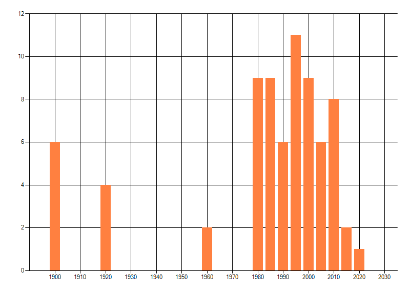 Het aantal atlasblokken (5x5 km) waarin de soort is gemeld binnen een periode van vijf jaar (vanaf 1980) of twintig jaar. Niet gecorrigeerd voor waarnemersinspanning en het aantal doorgegeven waarnemingen kan sterk variëren per periode, dus een trend in verspreiding kan hier niet direct uit worden afgelezen. Het opgegeven jaartal is het eerste jaar van de periode. Bron: gevalideerde waarnemingen uit de NDFF.