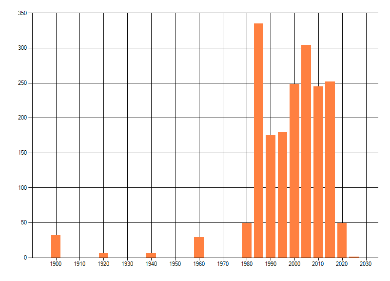 Het aantal atlasblokken (5x5 km) waarin de soort is gemeld binnen een periode van vijf jaar (vanaf 1980) of twintig jaar. Niet gecorrigeerd voor waarnemersinspanning en het aantal doorgegeven waarnemingen kan sterk variëren per periode, dus een trend in verspreiding kan hier niet direct uit worden afgelezen. Het opgegeven jaartal is het eerste jaar van de periode. Bron: gevalideerde waarnemingen uit de NDFF.