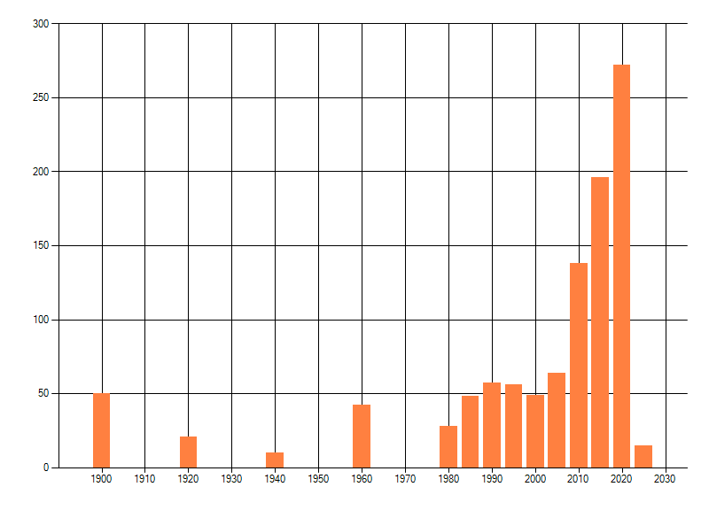 Het aantal atlasblokken (5x5 km) waarin de soort is gemeld binnen een periode van vijf jaar (vanaf 1980) of twintig jaar. Niet gecorrigeerd voor waarnemersinspanning en het aantal doorgegeven waarnemingen kan sterk variëren per periode, dus een trend in verspreiding kan hier niet direct uit worden afgelezen. Het opgegeven jaartal is het eerste jaar van de periode. Bron: gevalideerde waarnemingen uit de NDFF.