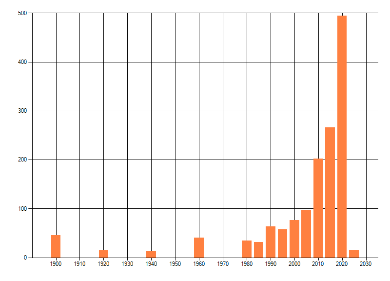 Het aantal atlasblokken (5x5 km) waarin de soort is gemeld binnen een periode van vijf jaar (vanaf 1980) of twintig jaar. Niet gecorrigeerd voor waarnemersinspanning en het aantal doorgegeven waarnemingen kan sterk variëren per periode, dus een trend in verspreiding kan hier niet direct uit worden afgelezen. Het opgegeven jaartal is het eerste jaar van de periode. Bron: gevalideerde waarnemingen uit de NDFF.