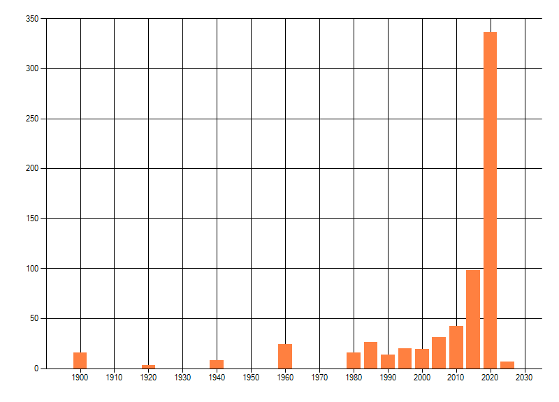 Het aantal atlasblokken (5x5 km) waarin de soort is gemeld binnen een periode van vijf jaar (vanaf 1980) of twintig jaar. Niet gecorrigeerd voor waarnemersinspanning en het aantal doorgegeven waarnemingen kan sterk variëren per periode, dus een trend in verspreiding kan hier niet direct uit worden afgelezen. Het opgegeven jaartal is het eerste jaar van de periode. Bron: gevalideerde waarnemingen uit de NDFF.
