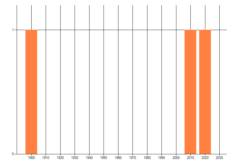 Het aantal atlasblokken (5x5 km) waarin de soort is gemeld binnen een periode van vijf jaar (vanaf 1980) of twintig jaar. Niet gecorrigeerd voor waarnemersinspanning en het aantal doorgegeven waarnemingen kan sterk variëren per periode, dus een trend in verspreiding kan hier niet direct uit worden afgelezen. Het opgegeven jaartal is het eerste jaar van de periode. Bron: gevalideerde waarnemingen uit de NDFF.