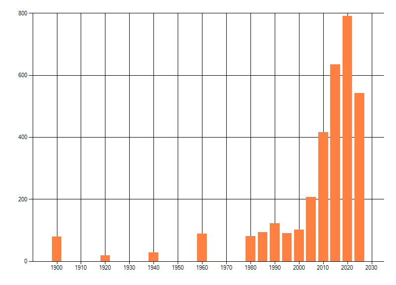 Het aantal atlasblokken (5x5 km) waarin de soort is gemeld binnen een periode van vijf jaar (vanaf 1980) of twintig jaar. Niet gecorrigeerd voor waarnemersinspanning en het aantal doorgegeven waarnemingen kan sterk variëren per periode, dus een trend in verspreiding kan hier niet direct uit worden afgelezen. Het opgegeven jaartal is het eerste jaar van de periode. Bron: gevalideerde waarnemingen uit de NDFF.