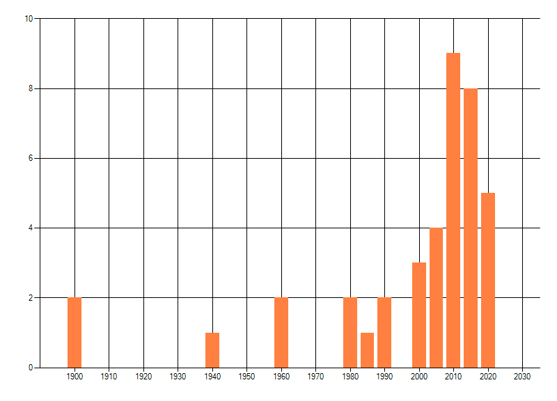 Het aantal atlasblokken (5x5 km) waarin de soort is gemeld binnen een periode van vijf jaar (vanaf 1980) of twintig jaar. Niet gecorrigeerd voor waarnemersinspanning en het aantal doorgegeven waarnemingen kan sterk variëren per periode, dus een trend in verspreiding kan hier niet direct uit worden afgelezen. Het opgegeven jaartal is het eerste jaar van de periode. Bron: gevalideerde waarnemingen uit de NDFF.