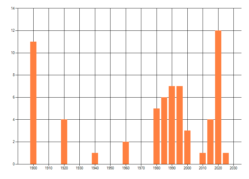 Het aantal atlasblokken (5x5 km) waarin de soort is gemeld binnen een periode van vijf jaar (vanaf 1980) of twintig jaar. Niet gecorrigeerd voor waarnemersinspanning en het aantal doorgegeven waarnemingen kan sterk variëren per periode, dus een trend in verspreiding kan hier niet direct uit worden afgelezen. Het opgegeven jaartal is het eerste jaar van de periode. Bron: gevalideerde waarnemingen uit de NDFF.