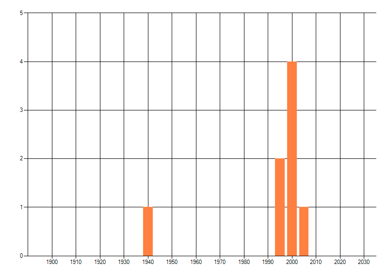 Het aantal atlasblokken (5x5 km) waarin de soort is gemeld binnen een periode van vijf jaar (vanaf 1980) of twintig jaar. Niet gecorrigeerd voor waarnemersinspanning en het aantal doorgegeven waarnemingen kan sterk variëren per periode, dus een trend in verspreiding kan hier niet direct uit worden afgelezen. Het opgegeven jaartal is het eerste jaar van de periode. Bron: gevalideerde waarnemingen uit de NDFF.